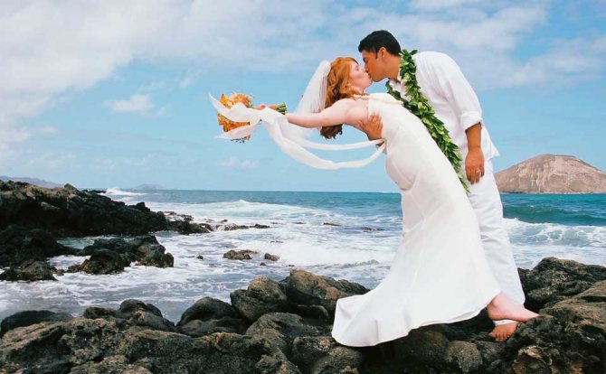 - «Морские» страны и острова (Куба, Бали, Ямайка, Доминиканская республика, Маврикий, Сейшелы, Шри-Ланка, Австралия, Индия). Церемонии в этих райских местечках проводятся на открытом воздухе, на побережье моря, в бунгало, экзотических местных локациях.