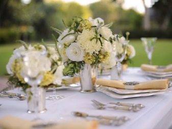 - Следует избегать сильно пахнущих цветов и ароматических свечей – в зале с большим скоплением народа от сильных запахов может разболеться голова. Пусть на празднике пахнет хорошими винами, вкусной едой и немного духами невесты.