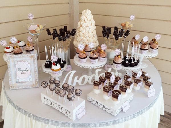 Цвет имеет огромное значение. Он призван отвечать тематике свадьбы, перекликаться и соответствовать ее тонам. Если невеста выбрала платье нежно-розового цвета, кэнди-бар может быть оформлен в той же цветовой гамме, задавая тон и тему праздника.