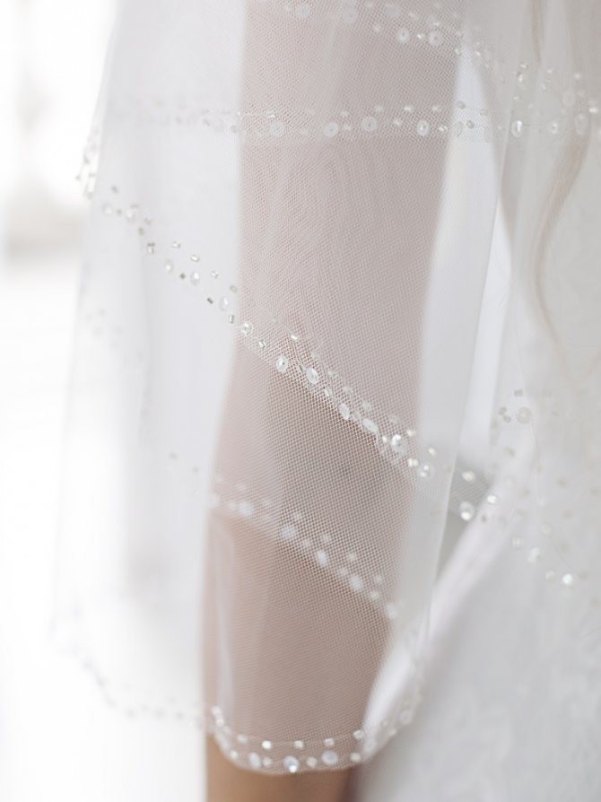 Квадратное лицо, массивная нижняя челюсть. Чтобы сгладить лицо, можно приобрести двуслойную фату с округлым краем, невесомая и длинная фата, которая чуть обрамляет лицо, также подойдет.