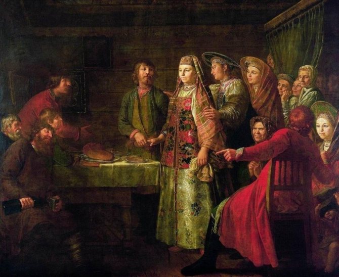 В дохристианскую эпоху обряд женитьбы символизировал расцвет природы и плодородие. После Крещения Руси некоторые языческие элементы сохранились, к ним добавились новые традиции. И в богатых семьях, и у простых крестьян, решение важного вопроса выбора спутника жизни главы семейств оставляли за собой. Но не все было так плохо. Молодые понимали сложившийся порядок и находили свои способы склонить отца к выбору полюбившегося суженного или суженой.
