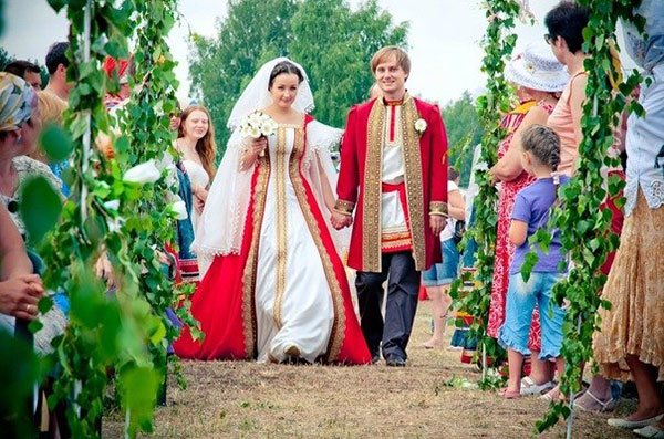 В пролом столетие венчание на русской народной свадьбе было обязательным. Новобрачные долго выбирали храм, в котором произойдет таинство венчания, а также свои наряды.