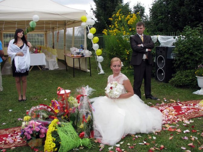 Другая традиция – встреча молодоженов с караваем, от которого они откусывают кусочки. Чей оказался больше, тот и глава семьи. Хлеб украшают фигурками лебедей, колосков, олицетворяет плодородие, богатство, счастье в жизни супругов.