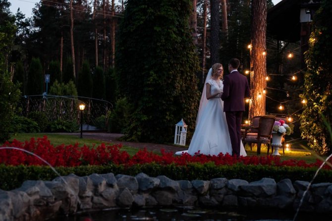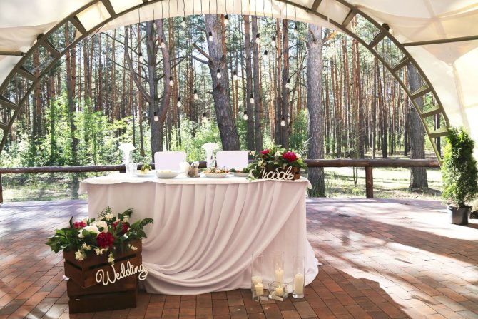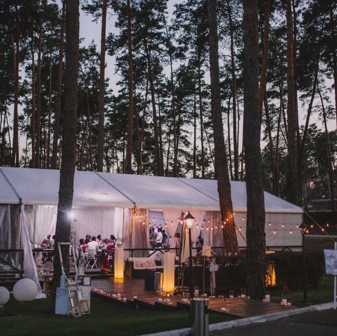 Только не торопись расстраиваться и делать вывод, что свадьба в лесу – плохая идея! Большинство вышеперечисленных нюансов решаются правильным выбором места. YesYes советует вам с женихом обратить внимание на ресторанные и гостиничные комплексы за городом, в лесной полосе. Только подумай, как это удобно: церемонию бракосочетания вы сможете провести на лесной поляне, а банкет устроить на летней террасе ресторана. И даже если тебе хочется сделать праздничный ужин прямо посреди леса, рядом расположенный ресторан обеспечит вас всем необходимым.