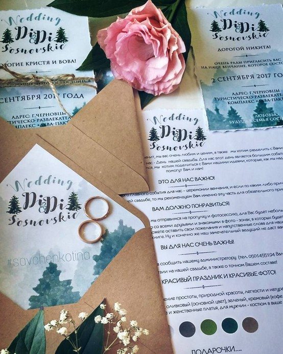 Лесная тематика свадьбы дарит лес вариантов для оформления пригласительных. Вот только несколько вариантов для вдохновения!