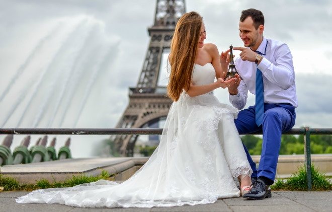 - Молодожены могут объединить церемонию бракосочетания и медовый месяц, проведя отпуск в Париже или на каком-нибудь французском курорте.