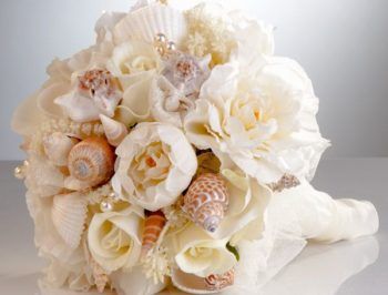 Необычно смотрится букет из декоративных ракушек и жемчужной нити. Такая композиция не оставит равнодушным никого.
