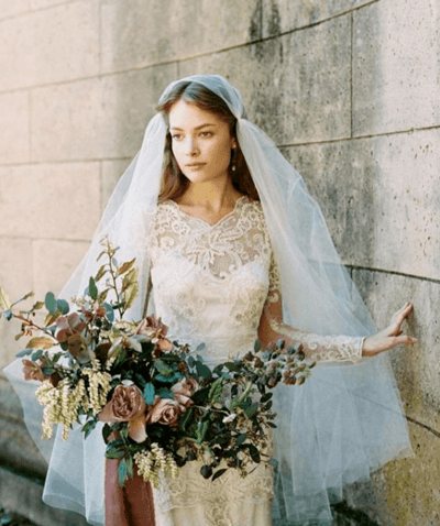 Широкополая изящная шляпа заменит привычную фату и сделает образ невесты неотразимым. Но если душа всё же не принимает шляпу, тогда нужно поднять высоко волосы в пучок (причёска а-ля Одри), украсив голову диадемой или лентой.