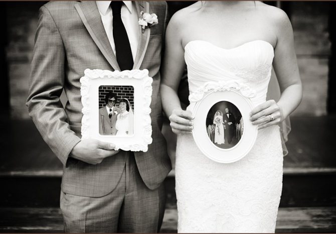Также можно просто взять в руки родительские свадебные снимки и сфотографироваться с ними.