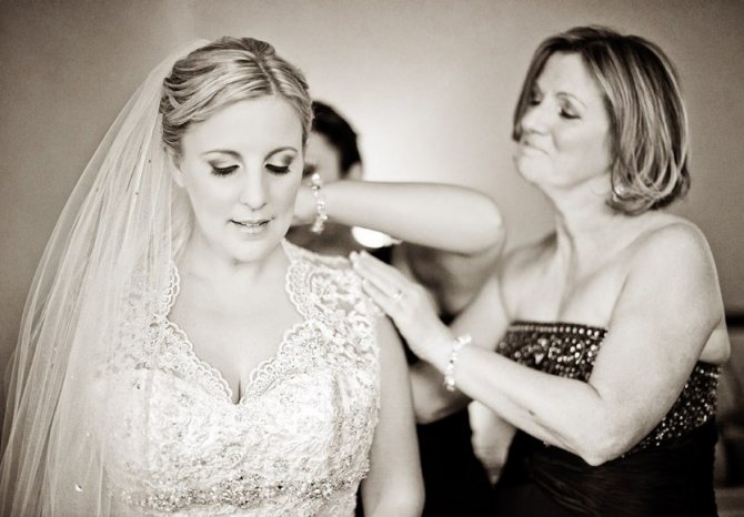 А как обойтись без снимков, на которых мама помогает невесте собираться в ЗАГС? Поправить прическу, разгладить складки на платье – как обойтись без мамы, лучшей подруги и советчицы?