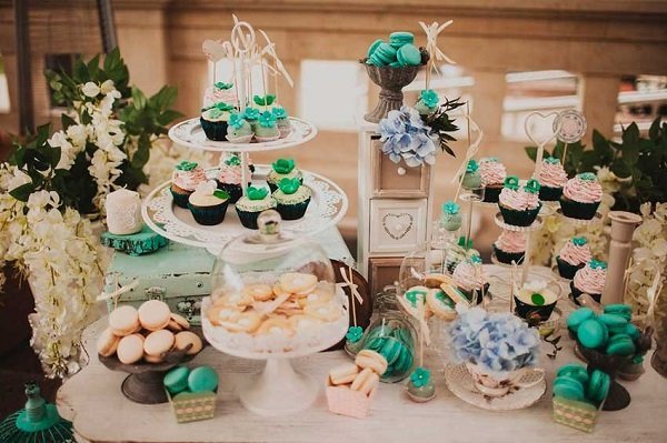 - Установите небольшой сладкий стол с конфетами и пирожными. Он станет не только декоративным украшением банкета, но и порадует самых маленьких гостей;