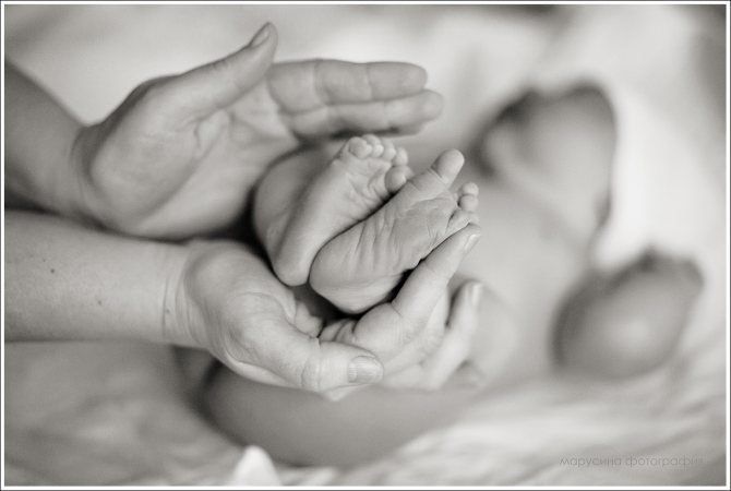 Отдельного внимания заслуживают фотографии, на которых в роли главной модели выступает малыш. Даже спящий ребенок может стать участником фотосессии. Интересные кадры получатся, если младенца положить в удобную корзину или специальное декоративное яйцо. Популярны фотографии с ножками и ручками малышей. Особенно эффектно ладошки и пяточки выглядят на фоне огромных рук и ног родителей.