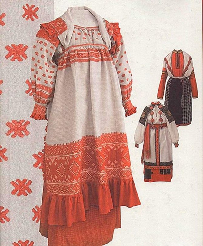 В старину неотъемлемым элементом костюма у русской девушки из бедной семьи были рубашка и сорочка. Сорочка была сделана из очень тонкой ткани и всегда украшалась тонкими шнурками. Рубаха же была изготовлена из грубого домотканого полотна, на котором вышивали цветы, рисунки птиц или другие орнаменты. Рисунок зачастую зависел от места проживания невесты.