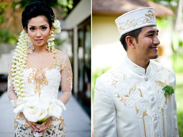 Самое популярное национальное свадебное платье Индонезии состоит из блузки (кебая) и юбки. «Блёстки на блестящей ткани» — так называют эту одежду местные. Но несмотря на кажущуюся вычурность, глаз быстро привыкает к подобному разнообразию и начинает замечать немаловажные детали: кружева и драгоценные камни, мелко разбросанные по всему платью.