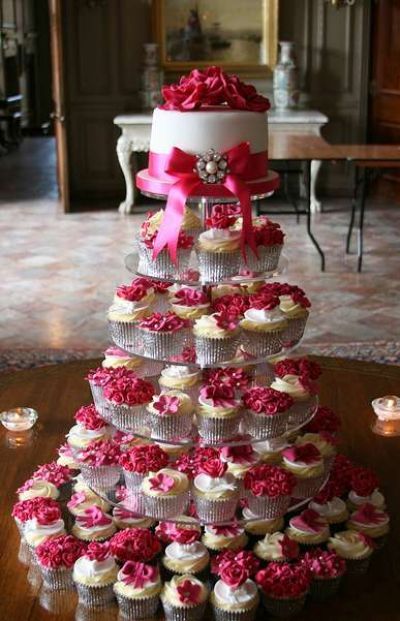 Пирамиды с капкейками на свадьбу могут быть разных форм и цветов. В зависимости от выбранного варианта свадебного оформления, продумывают основной тон композиции. Форма и цвет торта из капкейков может носить символический характер на национальной или тематической вечеринке. Взяв за основу следующие идеи, выбрать цветовую гамму оформления композиции с капкейками вам не составит труда: