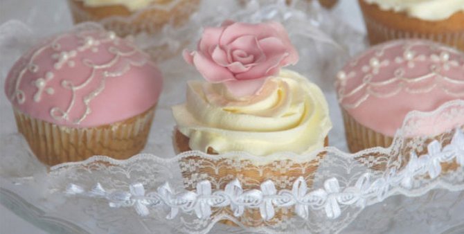 - Все кексы одинаковы по весу и идентично украшены, поэтому у гостей не останется неприятного осадка по поводу того, что у кого-то десерт красивее и больше.