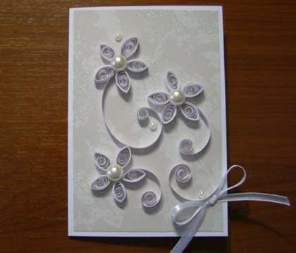 Нарезая из цветной бумаги тонкие полоски, скручиваете их в виде роллов и придаете нужную форму, создавая орнамент. Несомненно, что такие пригласительные удивят будущих гостей.
