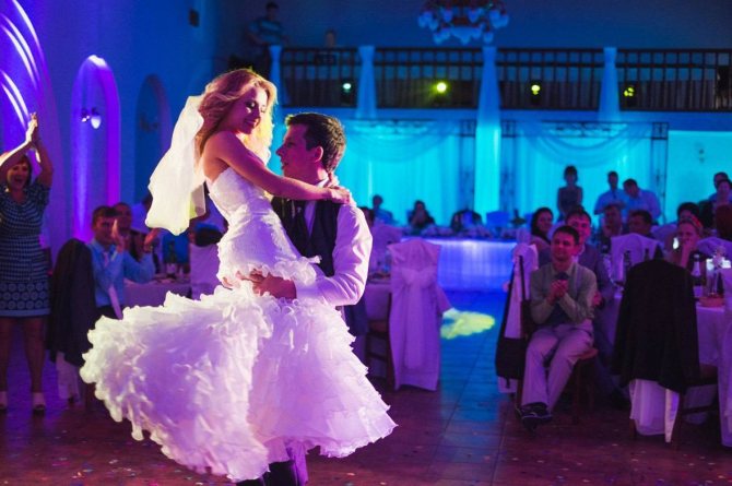 Далее, следуют поздравления и наказы от родителей жениха и невесты, от свидетелей. Наступает очередь первого танца молодоженов, а затем продолжается процесс поздравления и вручения подарков от друзей и родственников. Между поздравлениями необходимо делать перерывы, чтобы гости могли отдохнуть и отведать свадебные угощения. Веселые конкурсы и танцы нужны для всеобщего развлечения и веселья. Традиционными видами развлечений считается кража туфельки невесты или ее самой.