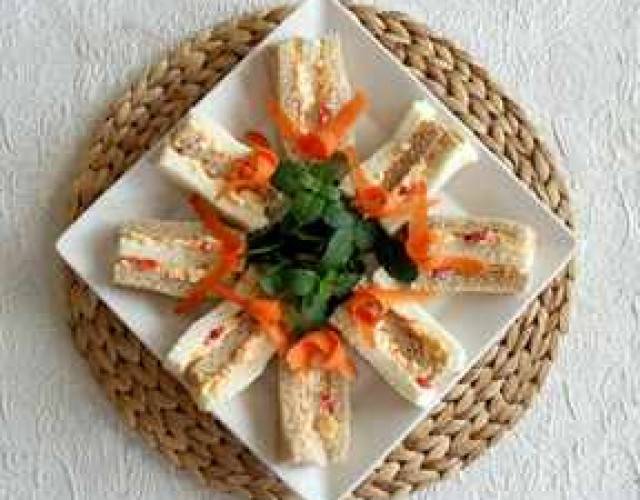 После того когда все бутерброды будут готовы украшаем их морковью, и красиво размещаем на тарелке.