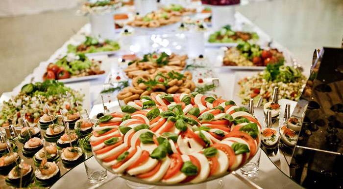 В России пока такой традиции нет, поэтому при планировании банкетного меню лучше акцентировать внимание не на количестве закусок или салатов, а на их разнообразии. В данном случае вы сможете удовлетворить желания каждого приглашенного человека