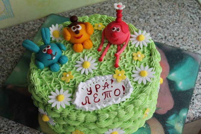Если десерт будет многоярусным, то по аналогии изготавливаются и другие его части, которые затем собираются воедино. Из мастики делаются плоские украшения с помощью силиконовой формы или лепятся объемные фигурки. Все элементы закрепляются на торте в заранее продуманной композиции, после чего десерт готов к транспортировке. Украшать такой десерт можно не только мастикой, но и масляным кремом.
