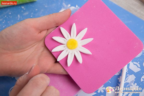 5Снова берем форму ромашки и выдавливаем из пласта цветок;