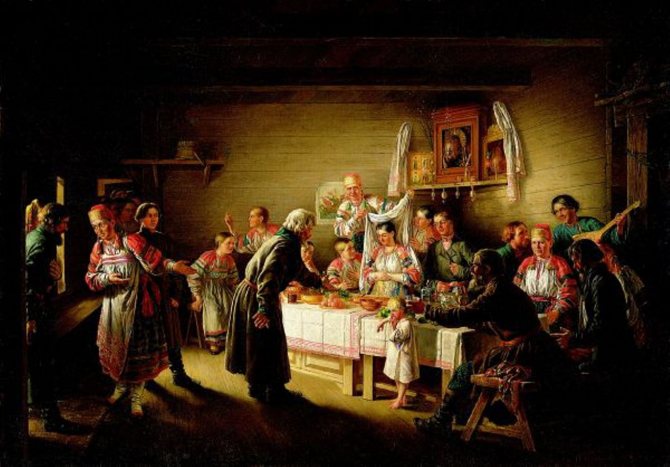 Родственники невесты угощали сватов, нахваливая свою дочь и рассказывая, какая она хозяйка, труженица и мастерица. Если семья невесты была богата, а девушка красива, то окончательного согласия с первого раза могли и не дать.