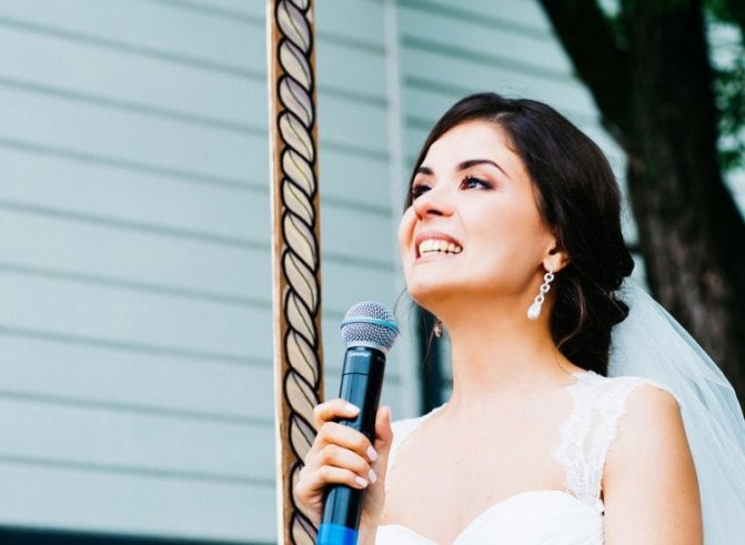 Каждая невеста на свадьбе прекрасна. Подвенечное платье, фата, прическа и праздничный макияж делают её королевой бала. Имея красивый голос и музыкальный слух, она сможет продемонстрировать талант гостям и сделать приятный эксклюзивный подарок новоиспеченному мужу.