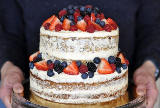 Это торты, в которых коржи не покрываются ни кремом, ни мастикой. При этом они не смотрятся скучно и некрасиво, потому что обычно украшены фруктами и ягодами, придающими десерту яркость и красоту.