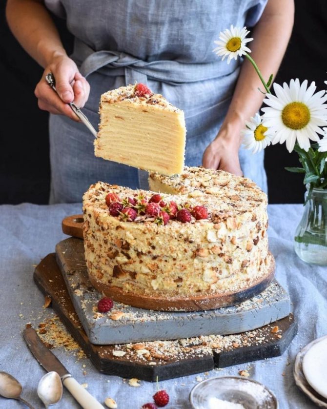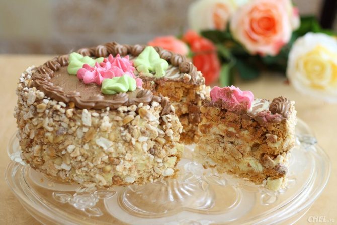 Верх лучше заделать кремом, чтобы следующий корж лежал ровно.