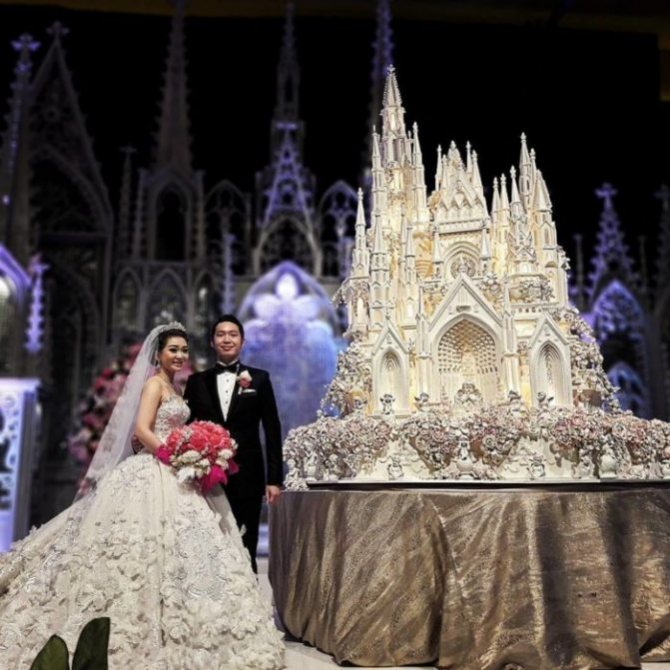 До недавнего времени, пока в моду не вошли голые торты, мастика была основным материалом при производстве свадебных тортов. Покрытые белой глазурью, украшенные цветами и вензелями, средневековой вязью – эти кондитерские шедевры украшали стол жениха и невесты. Такое страшно было резать, чтобы не нарушить всю конструкцию.