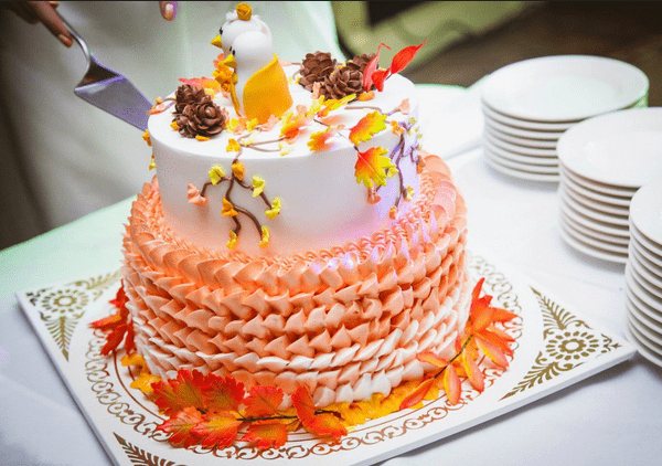Такой десерт подойдет для классической свадьбы, если в оформлении банкетного зала или нарядов молодоженов присутствует оранжевый оттенок. Что касается стилизованных торжеств, то такой торт выбирают для осенней тематики, ретро или диско. В некоторых случаях его делают для восточной или индийской свадьбы.