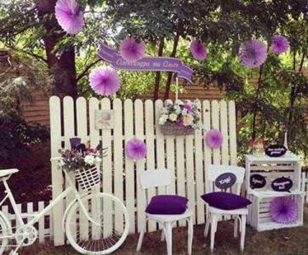 Здесь уместен и стог сена, и полосатые дорожки, при этом воздушные бумажные помпоны также актуальны, так как они добавят оформлению нежности и воздушности.