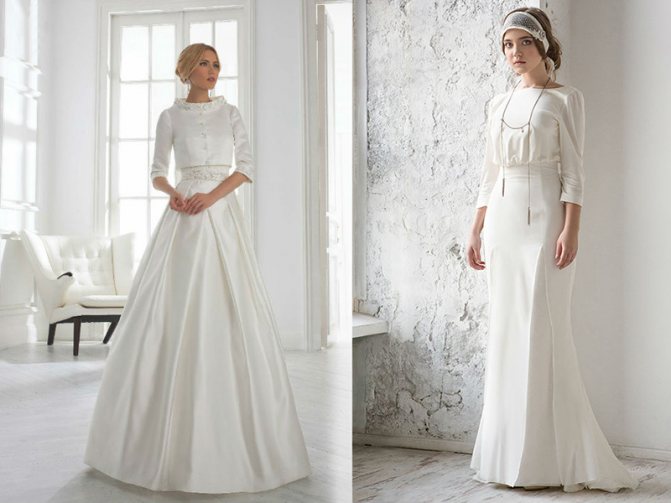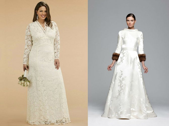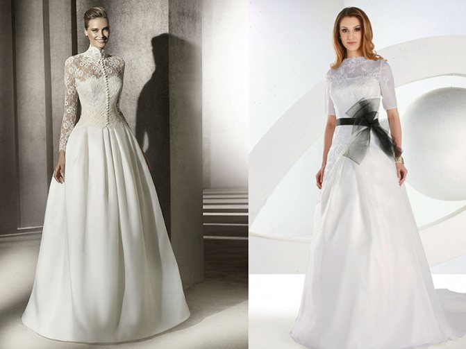 Самый скромный вариант для венчания. Это платье предусматривает закрытые руки и плечи, грудь и спину новобрачной. Часть фасонов имеет воротник, прикрывающий шею. Это идеальный вариант для невесты с полными руками и грудью. Если церемония планируется зимой, закрытое платье подойдет наилучшим образом. В нем вы будете ощущать себя комфортно и тепло.