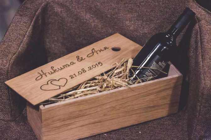 Отличным решением будет использование изготовленной на заказ шкатулки из дерева, которую можно украсить гравировкой с инициалами молодоженов, датой свадьбы и датой хранения.