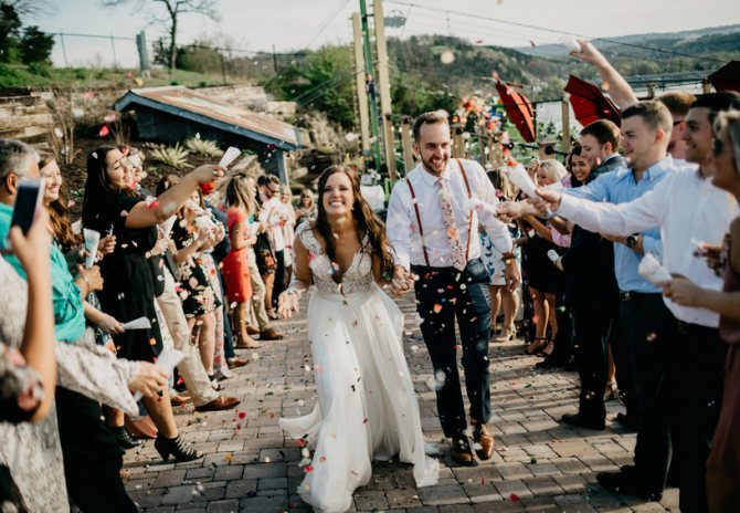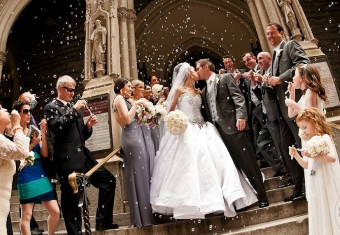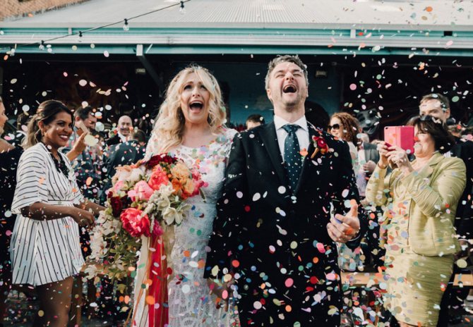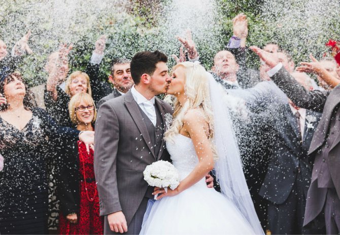 На смену пшенице и рису пришли конфетти! Яркие, парящие в воздухе, они необычайно выигрышно смотрятся на свадебных фотоснимках. И пусть символизм действа теряется, традиция продолжает жить.