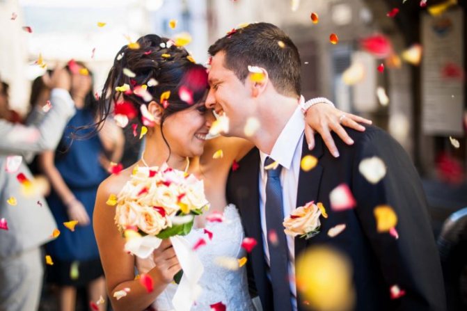Также гости могут осыпать их цветами, деньгами, пшеницей. Все это своеобразные символы. Лепестки означают красивую и пышную жизнь, монеты привлекают финансы в новую семью, а злаки отвечают за изобилие и детвору, которая должна вскоре появиться. Также есть регионы, где молодоженов осыпают хмелем, чтобы им было весело, орешками – так их брак будет крепким – и конфетами, чтобы судьба стала сладкой.