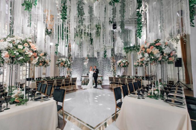 Правильно подобранные материалы помогут подчеркнуть задуманный стиль мероприятия. Драпировка также позволит поиграть с пространством, зонально разделить его.