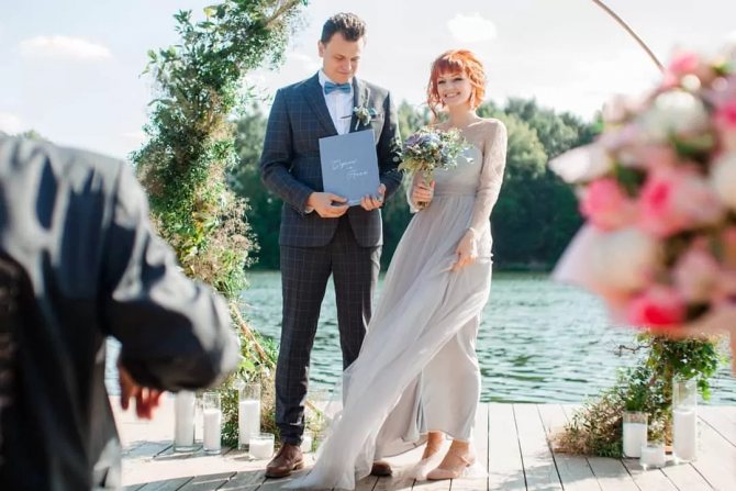 Стоит отметить, что в случае с неофициальной выездной регистрацией стиль мероприятию задают сами молодожены. Какие-либо рамки и стандарты отсутствуют: прочитать торжественную речь и выдать первый семейный документ может кто угодно.