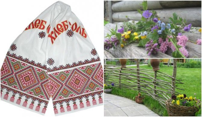 Основой букета невесты могут стать ромашки, ранункулюс, васильки, штокроза или иные луговые растения. Для придания «народности» позволительно добавить в композицию ветку калины, яблони, пшеничные колосья. Букеты, целиком выполненные из лилий, фаленопсиса или роз, на традиционной русской свадьбе будут неуместны.