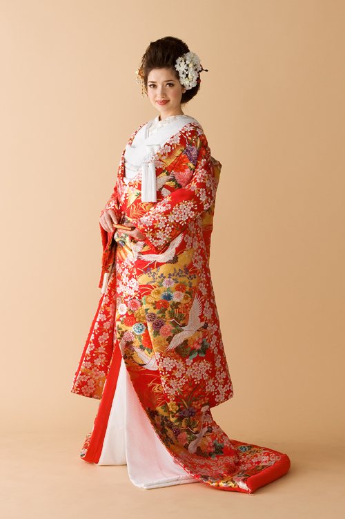 Что первое приходит на ум, когда вы думаете о платье японской невесты? Конечно – национальная одежда Японии – кимоно! Кимоно имеет прямую Т-образную форму с длинным и широкими рукавами. Этот наряд надевают японские женщины, мужчины и дети в особых случаях (хотя некоторые пожилые японцы по-прежнему носят его ежедневно). Так что по умолчанию, японские невесты в день свадьбы традиционно надевают кимоно.