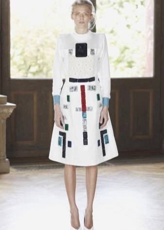 - Длина платья. Превалирующая часть платьев всех дизайнерских коллекций все же являются длинными и обладают пышностью. Многослойность нижней части платья позволило комбинировать с фактурой тканей. Основная юбка, выполненная из плотного материала, может быть короткой и покрываться сверху другой юбкой из полупрозрачной ткани до самых пят.