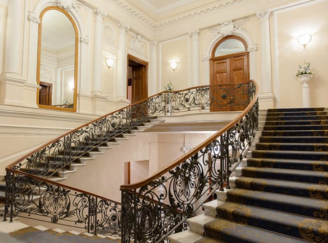 Встреча молодоженов гостями происходит на парадной лестнице.