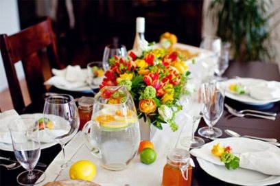 Сервировка стола также имеет значение. Накрыть стол следует тщательно, по-праздничному. Чайные сервиз, салфетки, вазы для букетов – все нужно заранее продумать. Пусть сейчас эта традиция не имеет такой силы, как прежде, лучше составить хорошее впечатление. Сменой блюд и подачей их на стол должна заниматься невеста. Кстати, новые блюда можно выносить, используя подносы. И удобно, и выглядит празднично.