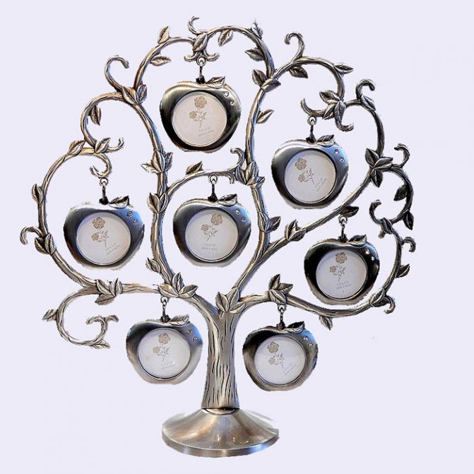 Фамильное древо из серебра. Вставьте в фоторамки на каждой веточке снимки членов семьи, чтобы создать генеалогическое древо.