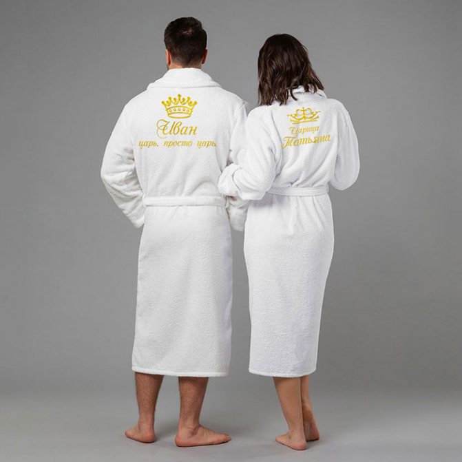 Именные банные халаты. Купите маме и папе по банному халату и закажите вышивку их имен серебристой нитью.