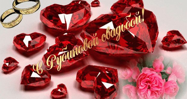 Спустя 40 лет семейной жизни супруги отмечают рубиновую свадьбу, именно так называется эта важная дата. Далеко не каждая супружеская пара может похвалиться таким «стажем», в котором было все: радости и печали, взлеты и падения, разочарования и радости… Такой брак бесценен, как и драгоценный камень, именем которого назван юбилей свадьбы.