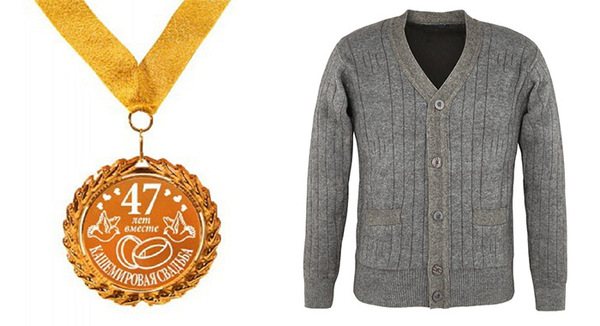 Ориентируясь на символику, главным подарком на кашемировую свадьбу должны быть вещи, сделанные из этого материала. Теплые вещи отличные, такие как свитер, шарф, кофта, варежки, перчатки — отличные подарки на 47 лет свадьбы, они будут незаменимы в холодное время года.