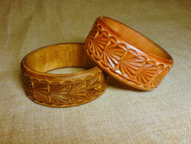 - Деревянный браслет на руку в форме тора — современное и очень модное украшение, которое может быть украшено резьбой, камнями и другими вставками. Добавить к браслету можно так же сережки из дерева