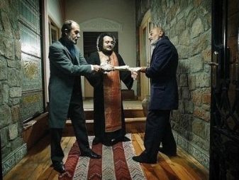 Так же приносились фрукты и изысканные угощения. Все подарки приносились на больших подносах, которые отдавались обратно наполненные подарками в адрес матери жениха. Невесту обязательно одевали в тот костюм, который подарил жених.